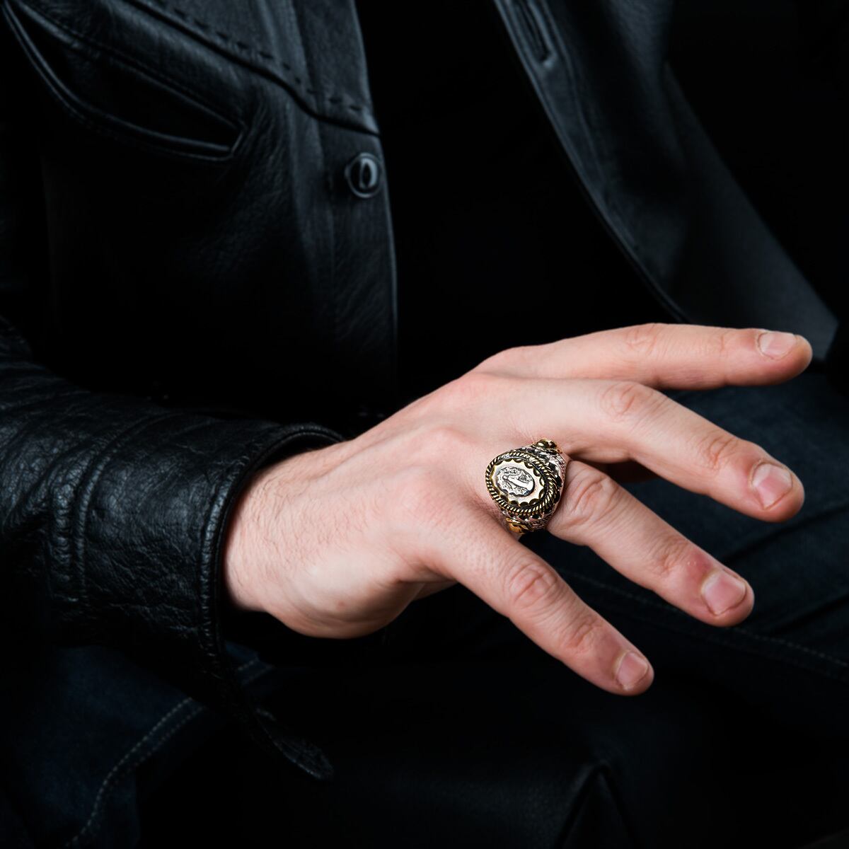重厚で美しい装飾とサイドにあしらわれた二対のスカルが霊妙な存在感を放つアイテム。