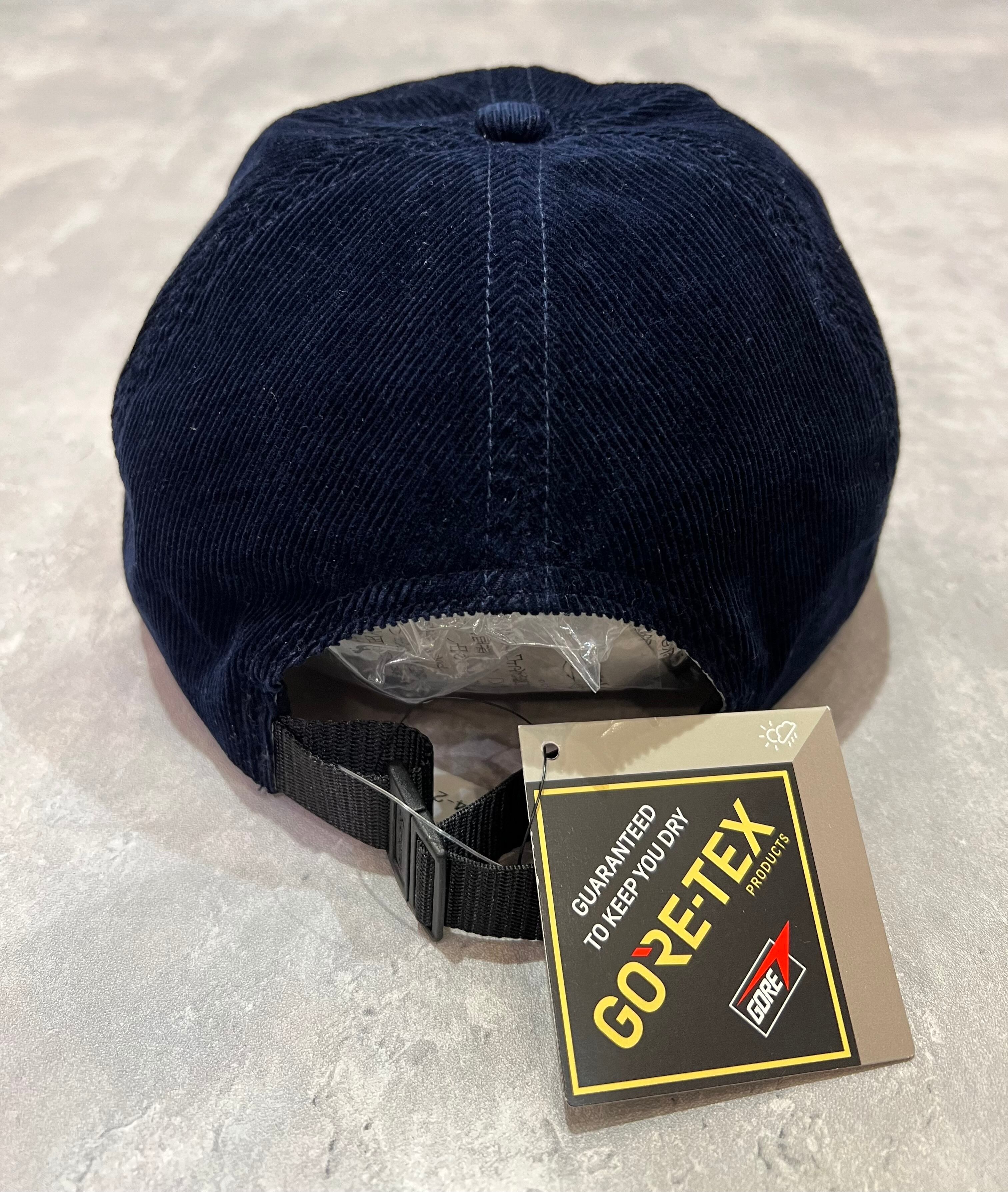 表面はコーデュロイ、裏地にゴアテックスを採用した6パネルキャップ
